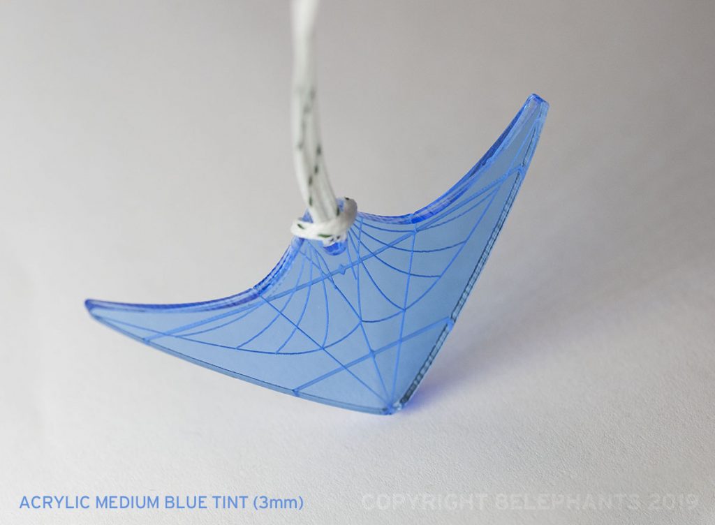 50mm wide Kite Zipper Pull in Medium Blue Tint Acrylic